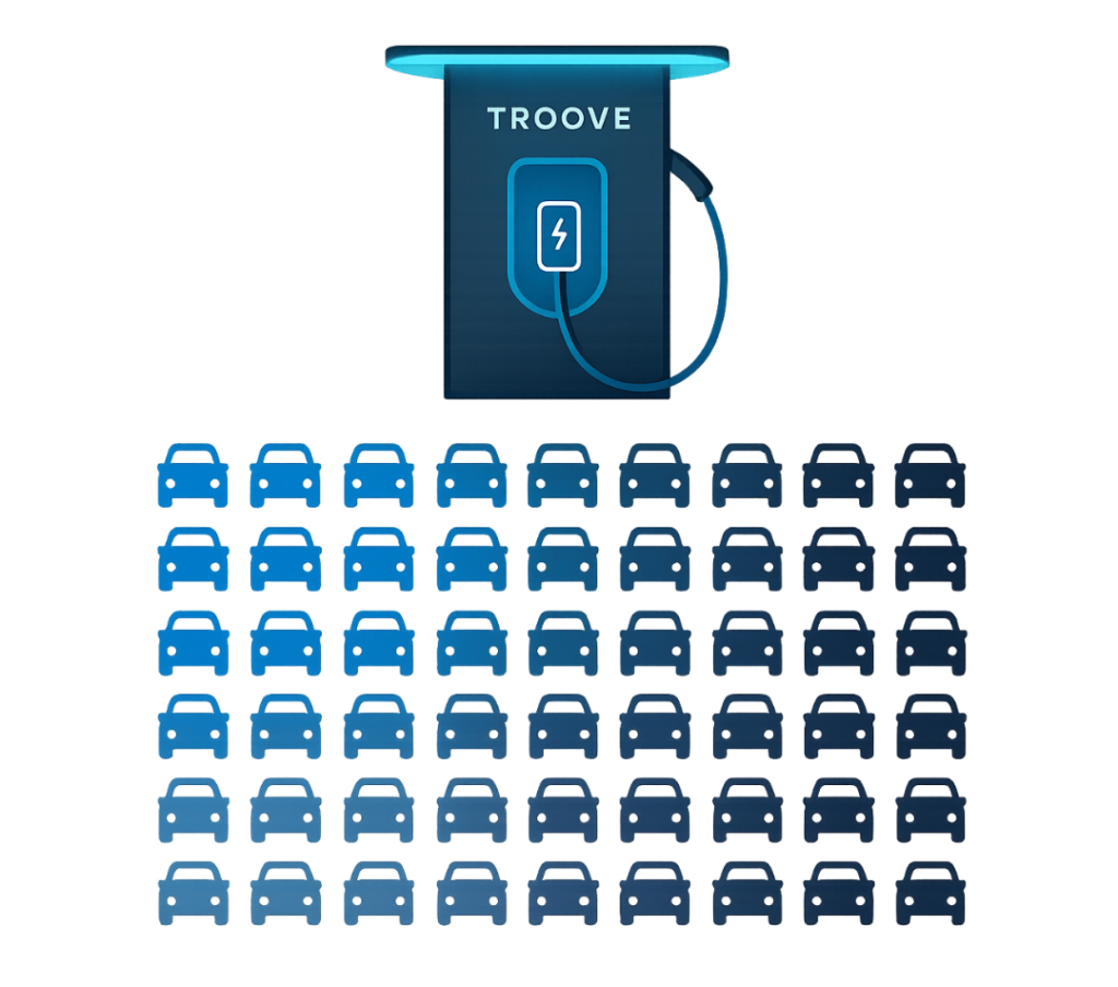 No projeto Troove 3T, a sua cota está distribuída em 10 carregadores instalados em diferentes pontos estratégicos, o que reduz o risco e aumenta a segurança do investimento. Mesmo que alguns operem em um cenário mais conservador, outros podem atingir alto volume de uso, equilibrando o desempenho e fortalecendo o retorno total da operação.